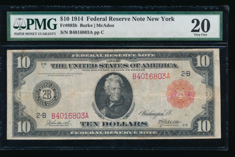 One 1914 $10 Red Seal New York Federal Reserve Note PMG 20.