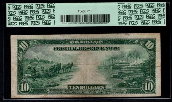 One 1914 $10 Red Seal Philadelphia Federal Reserve Note PCGS 25.