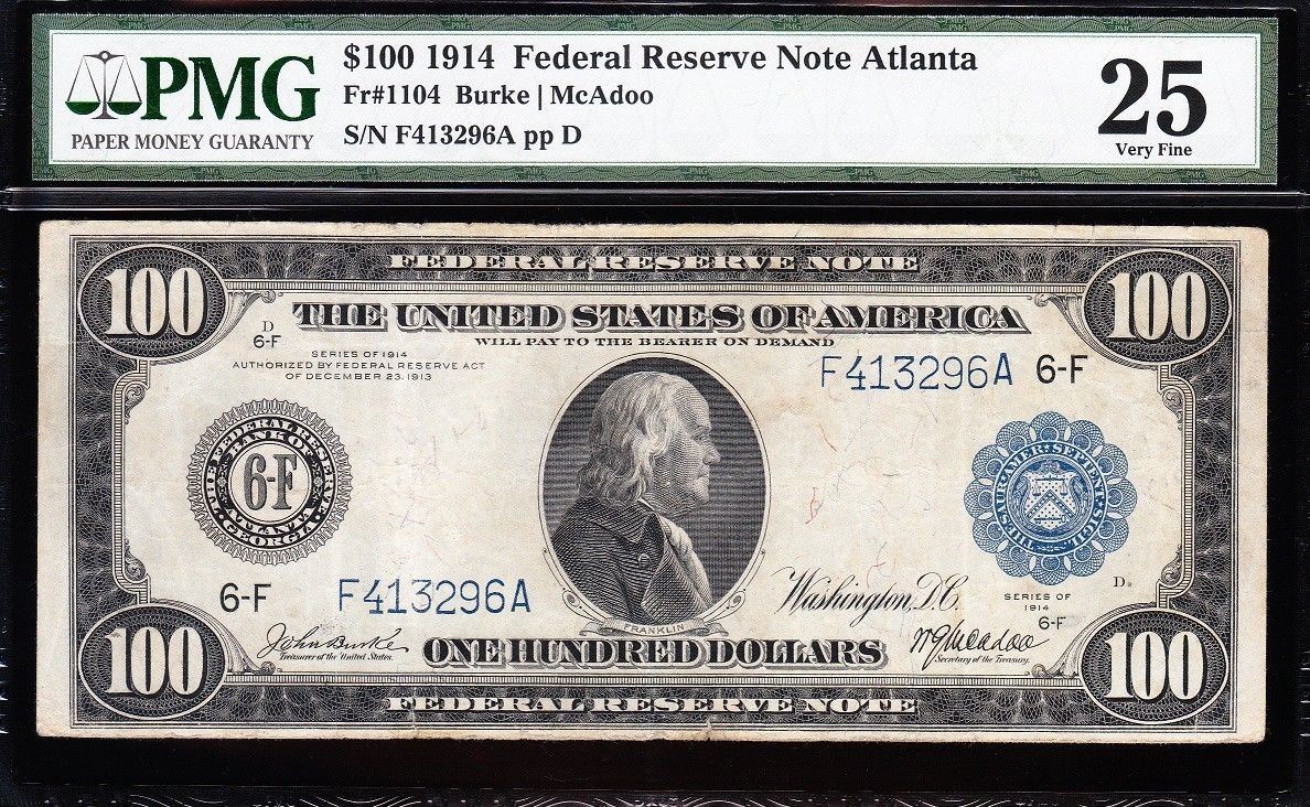 One 1914 $100 Atlanta Federal Reserve Note PMG 25.