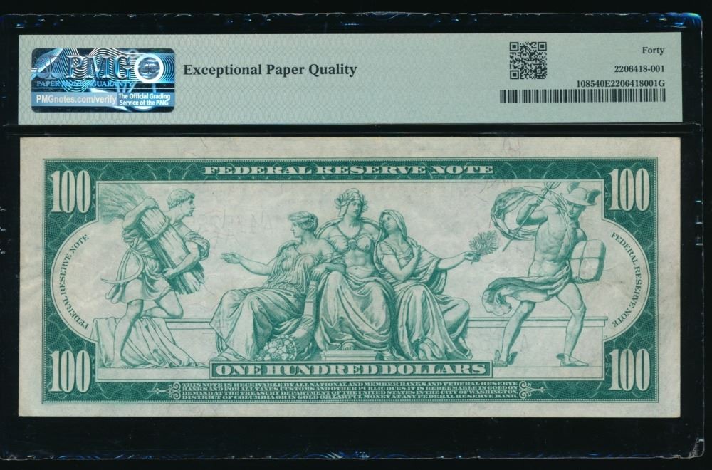One 1914 $100 Boston FRN PMG 40EPQ.