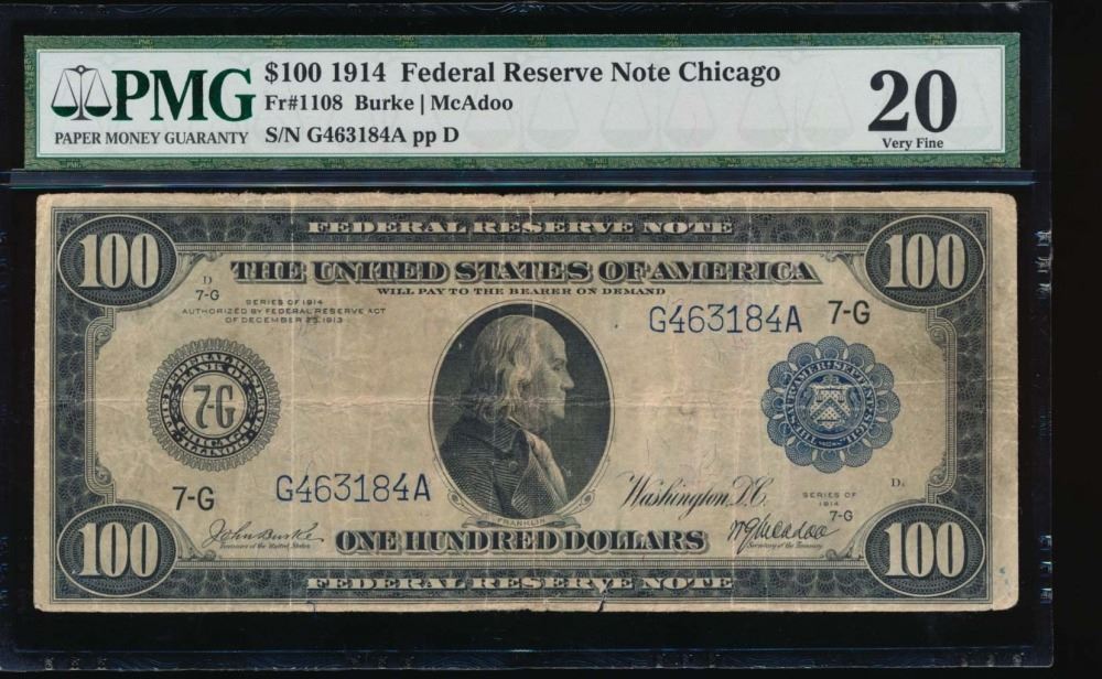 One 1914 $100 Chicago Federal Reserve Note PMG 20.