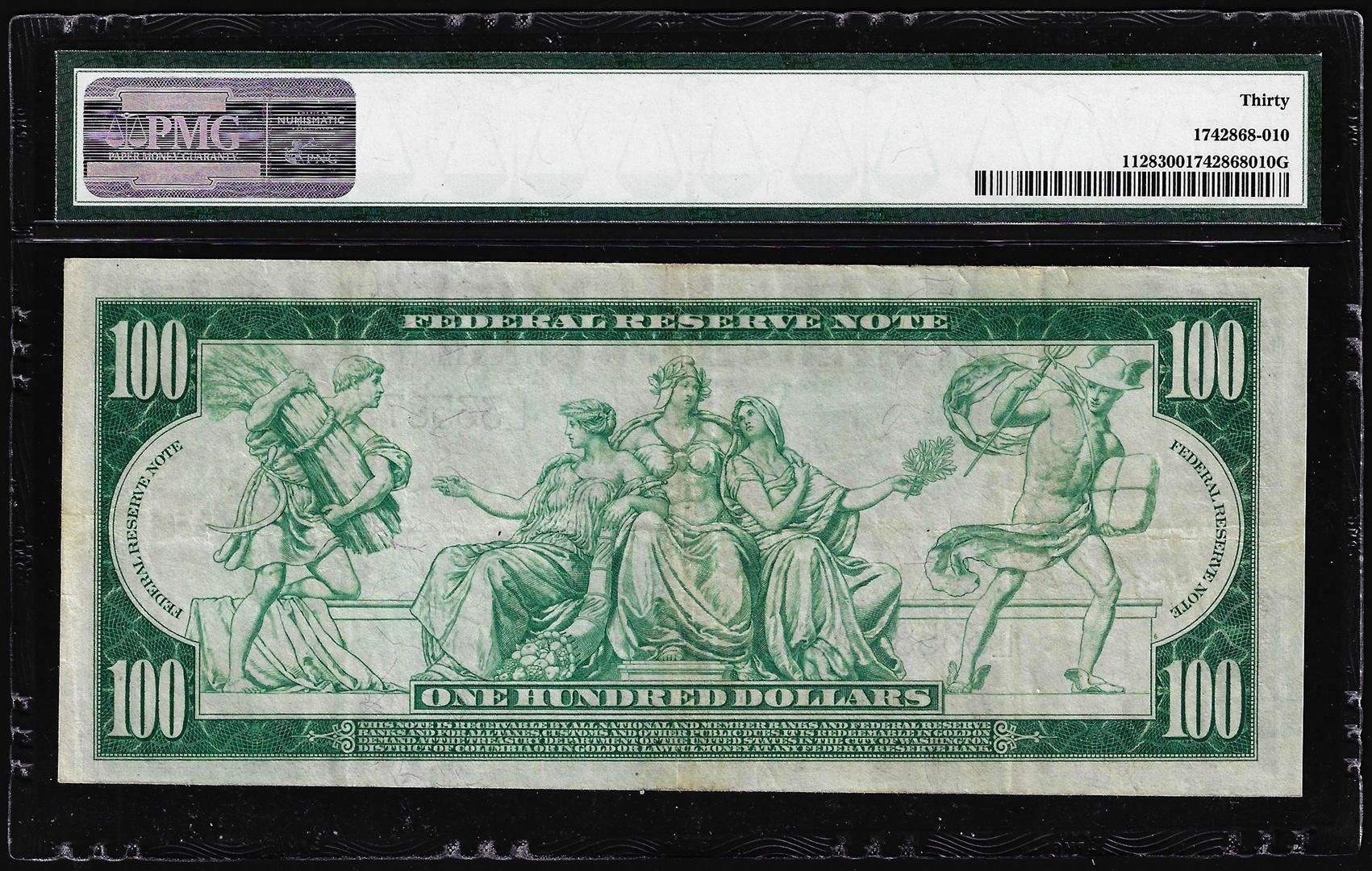 One 1914 $100 Federal Reserve Note San Francisco Fr.1128 PMG Very Fine 30. PMG Certified.