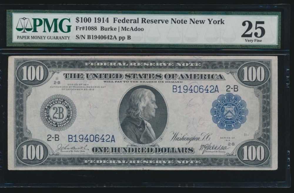 One 1914 $100 New York Federal Reserve Note PMG 25.
