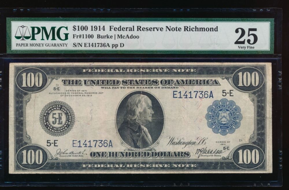 One 1914 $100 Richmond Federal Reserve Note PMG 25.