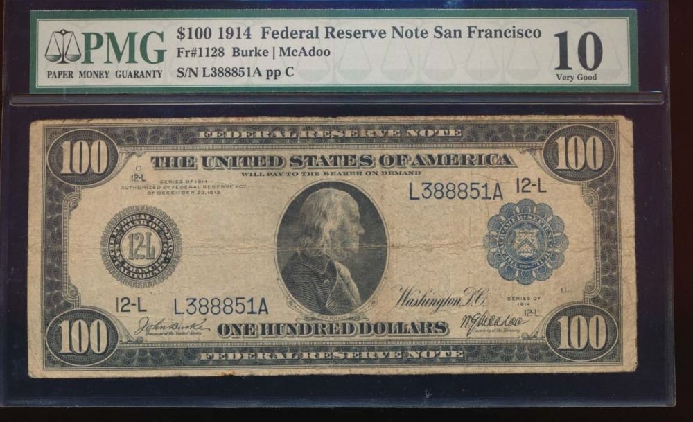 One 1914 $100 San Francisco Federal Reserve Note PMG 10.