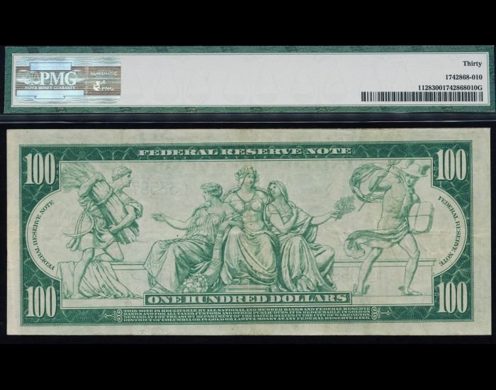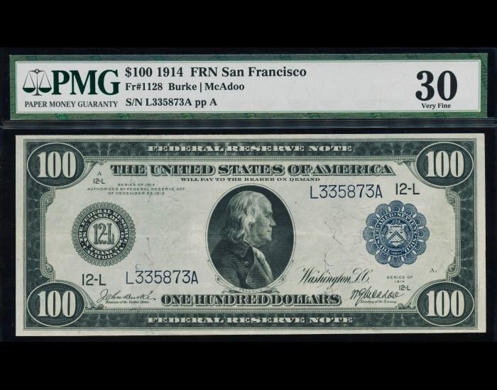 One 1914 $100 San Francisco Federal Reserve Note PMG 30.