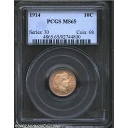 1914 10C MS65 PCGS. A lustrous Gem that has lovely pastel violet and gold patina. Boldly struck and.