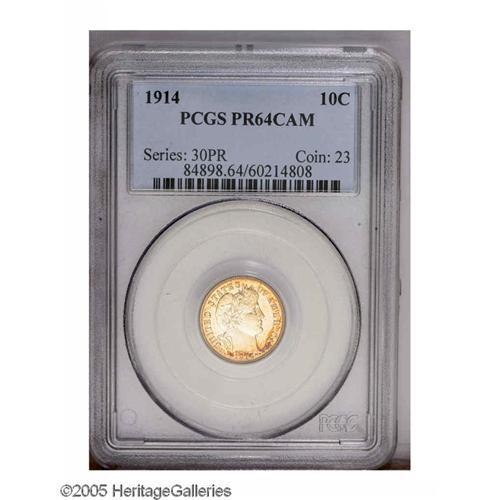 1914 10C PR64 Cameo PCGS. Wisps of lavender and gold-b 1914[10C] PR64 Cameo PCGS.