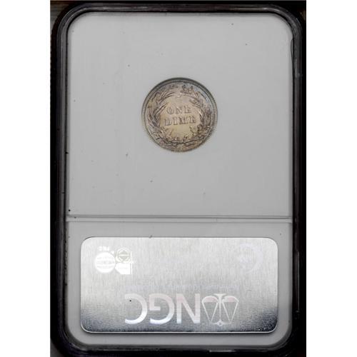 <B>1914<10C> PR64 NGC.</B></I> Fully struck with a coating of milky olive, gray, and electric-blue toning over each side. Free of hairlines or contact marks, with only mildly reflective fields.