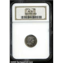 <table><tr><td><TABLE cellSpacing=0 cellPadding=0 width="100%" bgColor=#000000 border=0><TBODY> <TR><TD width="100%"><TABLE cellSpacing=1 cellPadding=3 width="100%" border=0><TBODY><TR><TD width="100%" bgColor=#79735c><FONT face=arial color=#ffffff size=3><B>Description</B> </FONT></TD></TR><TR><TD width="100%" bgColor=#ffffff><FONT face=arial size=2><B>1914 10C PR67 NGC.</B></I> The lowest mintage Proof Barber dime, only 425 pieces were struck. Splendid mottled purple, gray, and green toning overlays the obverse and part of the reverse. A conditionally rare example. Population: 7 in 67, 1 finer (7/03). </FONT></TD></TR></TBODY></TABLE></TD></TR></TBODY></TABLE><BR><A name=PricesRealized></A><TABLE cellSpacing=0 cellPadding=0 width="100%" bgColor=#000000 border=0><TBODY><TR><TD width="100%"><TABLE cellSpacing=1 cellPadding=3 width="100%" border=0><TBODY><TR><TD width="100%" bgColor=#79735c><A name=PR><FONT face=arial color=#ffffff size=3><B>Previous Prices from Heritage Auctions</B> </FONT></A></TD></TR><TR><TD bgColor=#f6f6ed><TABLE cellSpacing=0 cellPadding=0 width="100%" border=1><TBODY><TR><TD align=middle width="33%"><B>Date</B></TD><TD align=middle width="33%"><B>Service</B></TD><TD align=middle width="33%"><B>Price</B></TD></TR><TR bgColor=whitesmoke><TD width="33%"><B>05/02/1997</B></TD><TD width="33%">NGC</TD><TD width="33%">$2,200.00</TD></TR></TBODY></TABLE></TD></TR><TR><TD bgColor=#ffffff><FONT face=arial size=1 ?>PLEASE NOTE: All prices realized reflect the final hammer price PLUS the buyer's premium in auctions that charge a buyer's premium. Each item has a notation at the top of the listing indicating whether that lot included a buyer's premium. Example: A item that sells with a final hammer price of $100 and a 20% buyer's premium will display with a price realized of $120. All information listed is intended to be as accurate as possible, but errors are possible. Please use this guide carefully and inform us of any inaccuracies. </FONT></TD></TR></TBODY></TABLE></TD></TR></TBODY></TABLE><BR><TABLE cellSpacing=0 cellPadding=0 width="100%" bgColor=#000000 border=0><TBODY><TR><TD width="100%"><TABLE cellSpacing=1 cellPadding=3 width="100%" border=0><TBODY><TR><TD width="100%" bgColor=#79735c colSpan=6><FONT face=arial color=#ffffff size=3><B>Price Guide*</B> </FONT></TD></TR><TR bgColor=#f6f6ed><TD align=middle><B>Grade</B> </TD><TD align=middle><B>Coin World<BR>(Trends)</B> </TD><TD align=middle><B>Numismedia<BR>Retail</B> </TD><TD align=middle><B>Numismedia<BR>Wholesale</B> </TD><TD align=middle><B>Coin<BR>Universe</B> </TD><TD align=middle><B>Heritage<BR>Value Index</B> </TD></TR><TR bgColor=#ffffff><TD align=middle>66</TD><TD align=right>---</TD><TD align=right>---</TD><TD align=right>$1,500.00</TD><TD align=right>$2,500.00</TD><TD align=right>$1,730.00</TD></TR><TR style="FONT-WEIGHT: bold" bgColor=#cccfdd><TD align=middle>67</TD><TD align=right>---</TD><TD align=right>---</TD><TD align=right>$3,925.00</TD><TD align=right>$5,000.00</TD><TD align=right>$3,500.00</TD></TR><TR bgColor=#ffffff><TD align=middle>68</TD><TD align=right>---</TD><TD align=right>---</TD><TD align=right>$8,950.00</TD><TD align=right>---</TD><TD align=right>---</TD></TR><TR bgColor=#ffffff><TD colSpan=6><FONT size=1>*All information listed is intended to be as accurate as possible, but errors are possible. No item may be returned or refused based on this information which is provided as a service to our customers. You should contact each pricing source directly to determine the accuracy of this information. </FONT></TD></TR></TBODY></TABLE></TD></TR></TBODY></TABLE><BR><TABLE cellSpacing=0 cellPadding=0 width="100%" bgColor=#000000 border=0><TBODY><TR><TD width="100%"><TABLE cellSpacing=1 cellPadding=3 width="100%" border=0><TBODY><TR><TD width="100%" bgColor=#79735c><FONT face=arial color=#ffffff size=3><B>Population Guide</B> </FONT></TD></TR><TR bgColor=#ffffff><TD align=middle><!-- Begin Output of Population Grid--><TABLE cellSpacing=0 cellPadding=0 width="100%" border=0><TBODY><TR><TD vAlign=center><TABLE cellSpacing=0 width="100%" border=1 cellsadding="3"><TBODY><TR><TD vAlign=center><TABLE cellSpacing=0 cellPadding=3 width="100%" border=1><TBODY><TR><TD vAlign=center align=middle bgColor=#f0f1e8 colSpan=2 <CENTER><FONT face=Arial size=2><B>PCGS Pop </B></FONT><CENTER></CENTER></TD><TD vAlign=center align=middle bgColor=#f0f1e8 colSpan=2><CENTER><FONT face=Arial size=2><B>NGC Pop</B></CENTER></FONT></TD></TR><TR><TD vAlign=center><FONT face=Arial size=2>(67)</FONT> </TD><TD vAlign=center align=right><FONT face=Arial size=2>4</FONT> </TD><TD vAlign=center><FONT face=Arial size=2>(67)</FONT> </TD><TD vAlign=center align=right><FONT face=Arial size=2>7</FONT> </TD></TR><TR><TD vAlign=center><FONT face=Arial size=2>(>67)</FONT> </TD><TD vAlign=center align=right><FONT face=Arial size=2>1</FONT> </TD><TD vAlign=center><FONT face=Arial size=2>(>67)</FONT> </TD><TD vAlign=center align=right><FONT face=Arial size=2>1</FONT> </TD></TR></TBODY></TABLE></TD></TR></TBODY></TABLE></TD></TR></TBODY></TABLE><!-- End Output of Population Grid--></TD></TR></TBODY></TABLE></TD></TR></TBODY></TABLE><BR><TABLE cellSpacing=0 cellPadding=0 width="100%" bgColor=#000000 border=0><TBODY><TR> Important notice: Heritage usually auctions material at the rate of 200-250 lots per hour. On some occasions eBay Live bid software or the Internet may not be able to keep up with the pace of the auction. We recommend placing a realistic absentee bid now as insurance to avoid disappointment. Occasionally the auctioneer may eliminate or reject an eBay Live bid, and the auctioneer may also reopen a lot after the close of the eBay live bidding (usually because we missed an audience bid), and may reject your bid even if it shows you as the winning bidder. By bidding via eBay Live, you agree that Heritage may award the lot to another bidder at its sole discretion under the circumstances described above or any other reasonable circumst
