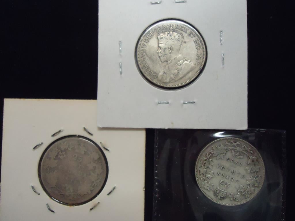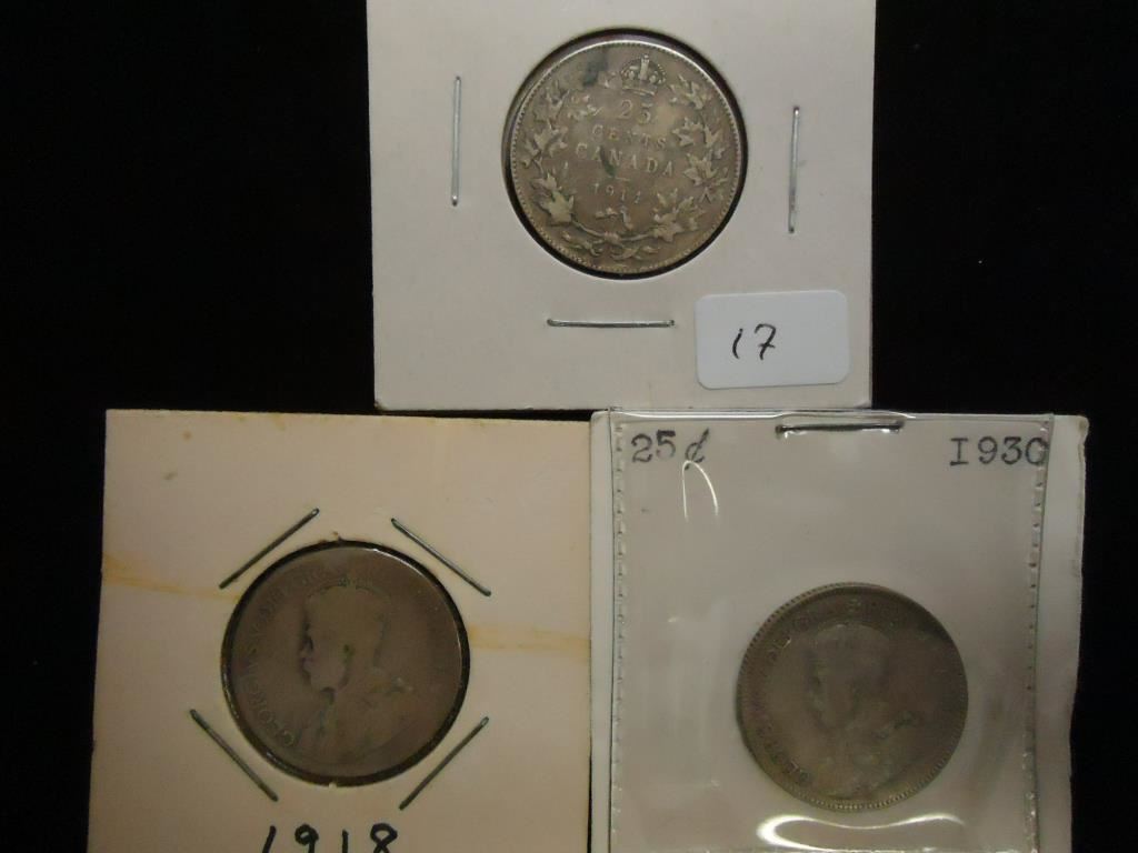 1914,18 & 30 CANADA SILVER 25 CENTS