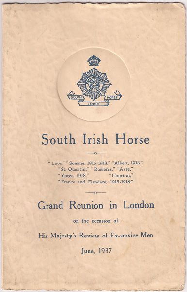 An extremely desirable original late war officers tunic with South Irish Horse buttons by Henecy & Son of Dublin, overseas service stripes to cuff and attached medal ribbons of the Queen's South Africa Medal, 1914-15 Star and The Most Venerable Order of the Hospital of Saint John of Jerusalem. Also with original attributing documents, Edward VII commission certificate promoting Frederick Faber MacCabe as a Surgeon Lieutenant on 14 September 1903 in the South of Ireland Imperial Yeomanry. Trinity College Latin vellum medical degree of MacCabe. 1937 South Irish Horse London reunion dinner menu with name of MacCabe noted and a pair of brass spurs. (5 items)Frederick Faber MacCabe was born in Waterford in 1868. He served as a civilian surgeon during the Boer War and was commissioned as medical officer to the South of Ireland Imperial Yeomanry in 1903. A man of many talents he also worked as a horse trainer at Glencairn House, Sandyford, Dublin and trained the famous horse Orby, owned by Richard Croker, to become the first Irish trained winner of the Epsom Derby. During the First World War he served as medical officer for the South Irish Horse on the Western Front from June 1915, being promoted to the rank of Lieutenant Colonel by 1918. He died in 1954.