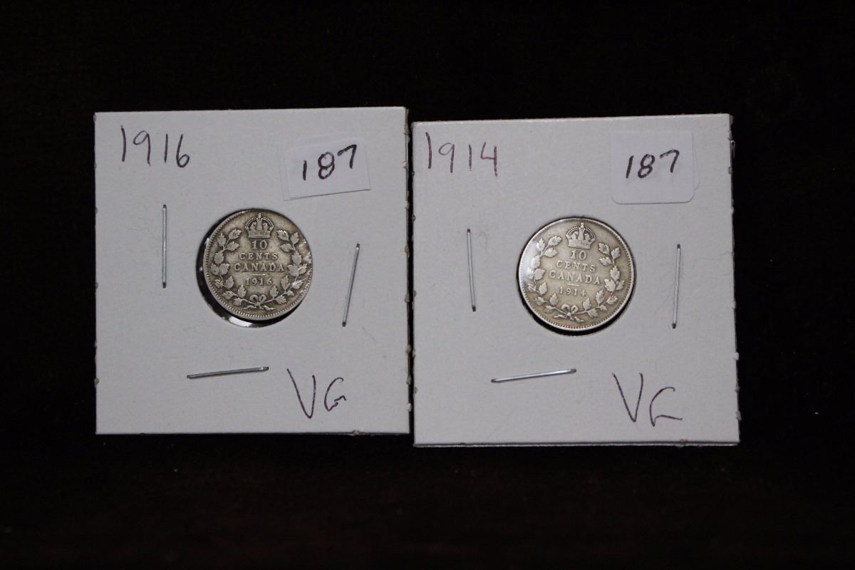 1914; 1916 Canadian Ten Cent Coins