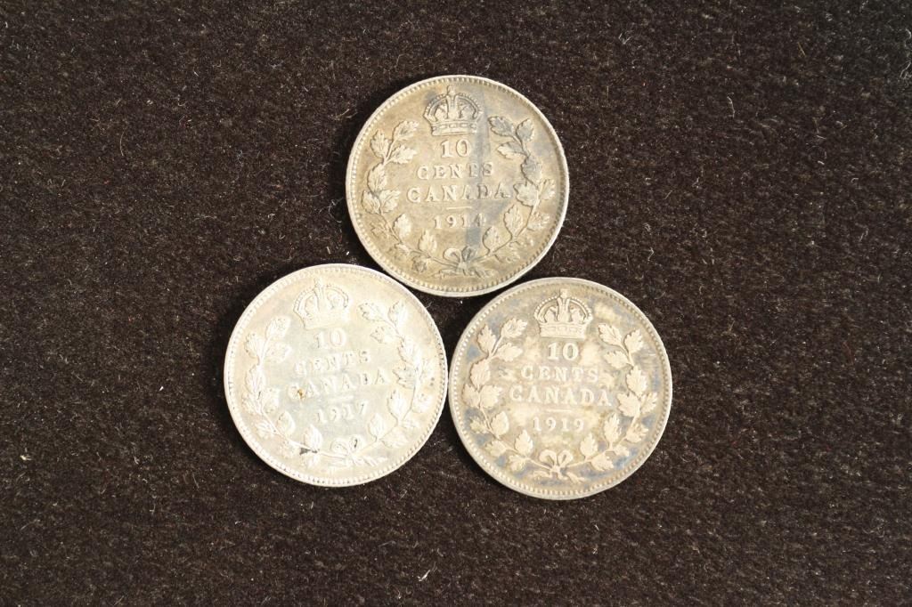 1914,1917 & 1919 CANADA SILVER 10 CENTS