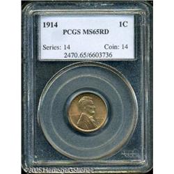<B>1914 1C MS65 Red PCGS.</B></I> A beautiful, original coin that has slightly deeper red color on the obverse with a brighter reverse. Fully struck and free from any noticeable traces of carbon. Population: 99 in 65, 39 finer (1/05). Lot:5412