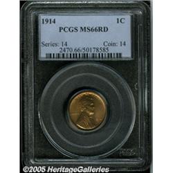 <B>1914 1C MS66 Red PCGS.</B></I> A lustrous Gem that has bright golden-red color and exquisitely preserved fields. Boldly struck with pleasing eye appeal. No marks or spotting is reported. Population: 34 in 66, 3 finer (2/05).