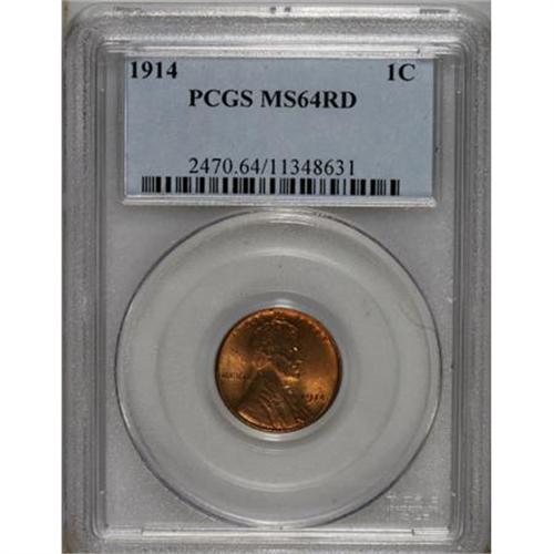 <B>1914 1C MS64 Red PCGS.</B></I> PCGS Population (164/164). NGC Census: (56/53). Mintage: 75,238,432. Numismedia Wsl. Price for NGC/PCGS coin in MS64: $180. (#2470)<BR><BR><B>Coin Engraver:</B> Victor D. Brenner<BR><BR><b>Shipping:</b> Coins & Currency (<a target="_blank" href="http://www.heritageauctions.com/common/shipping.php">view shipping information</a>)