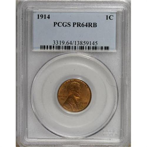 <B>1914 1C PR64 Red and Brown PCGS.</B></I> PCGS Population (63/71). NGC Census: (25/61). Mintage: 1,365. Numismedia Wsl. Price for NGC/PCGS coin in PR64: $625. (#3319)<BR><BR><B>Coin Engraver:</B> Victor D. Brenner<BR><BR><b>Shipping:</b> Coins & Currency (<a target="_blank" href="http://www.heritageauctions.com/common/shipping.php">view shipping information</a>)