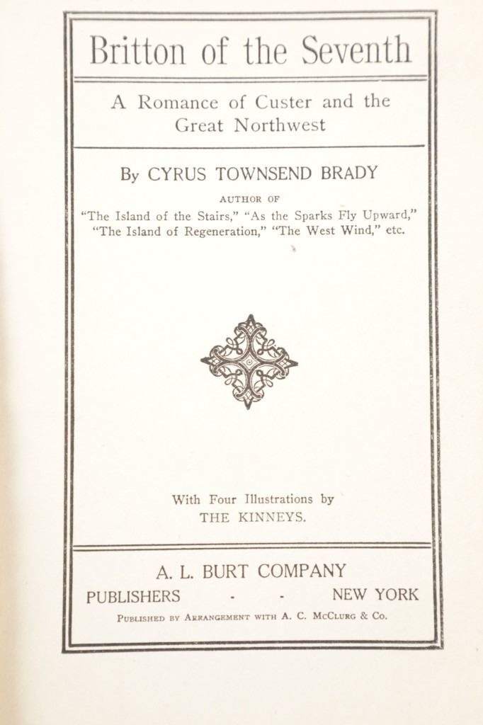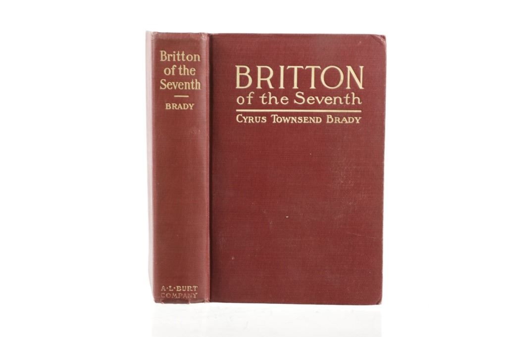 Featured in this lot is a 1914 first edition of Britton of the Seventh by Cyrus Townsend. The book features a wonderfully and professionally crafted construction that is a saga and fiction using the romance of Custer and the Great Northwest. The condition of this book shows some wear to the outside cover in the corners and the spine with some browning to the pages consistent with the age. The measurements of this book are 7 5/8" x 5 1/4". The collective weight of this book is 1lb.*