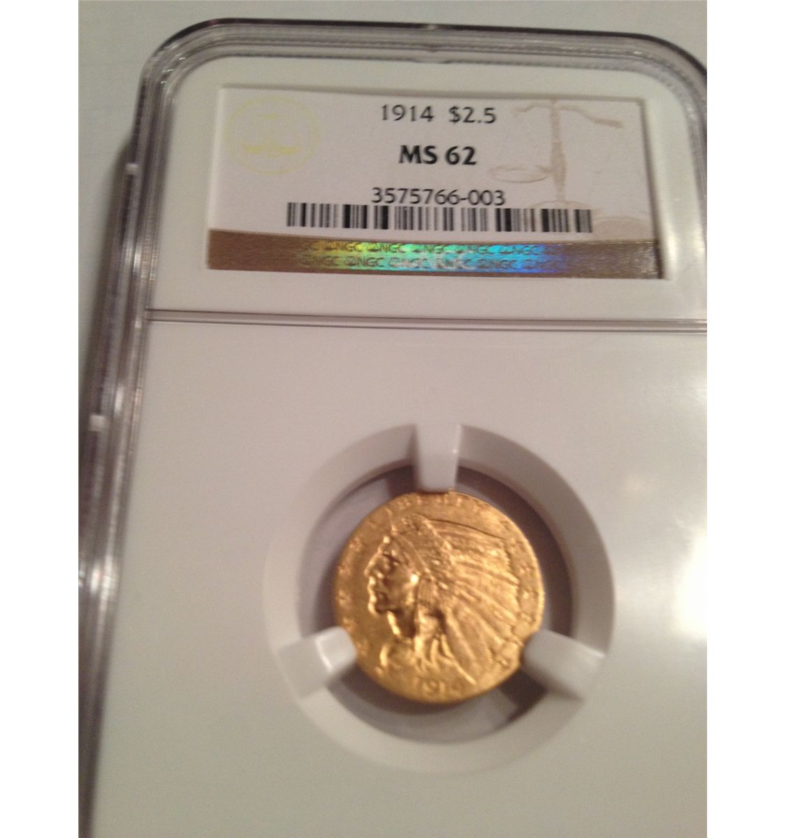 1914 $2 1/2 GOLD INDIAN HEAD NGC MS-62 RARE! LOW MINTAGE