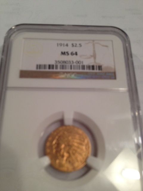 1914 $2 1/2 GOLD INDIAN HEAD NGC MS-64, VERY FEW LEFT IN THIS GRADE