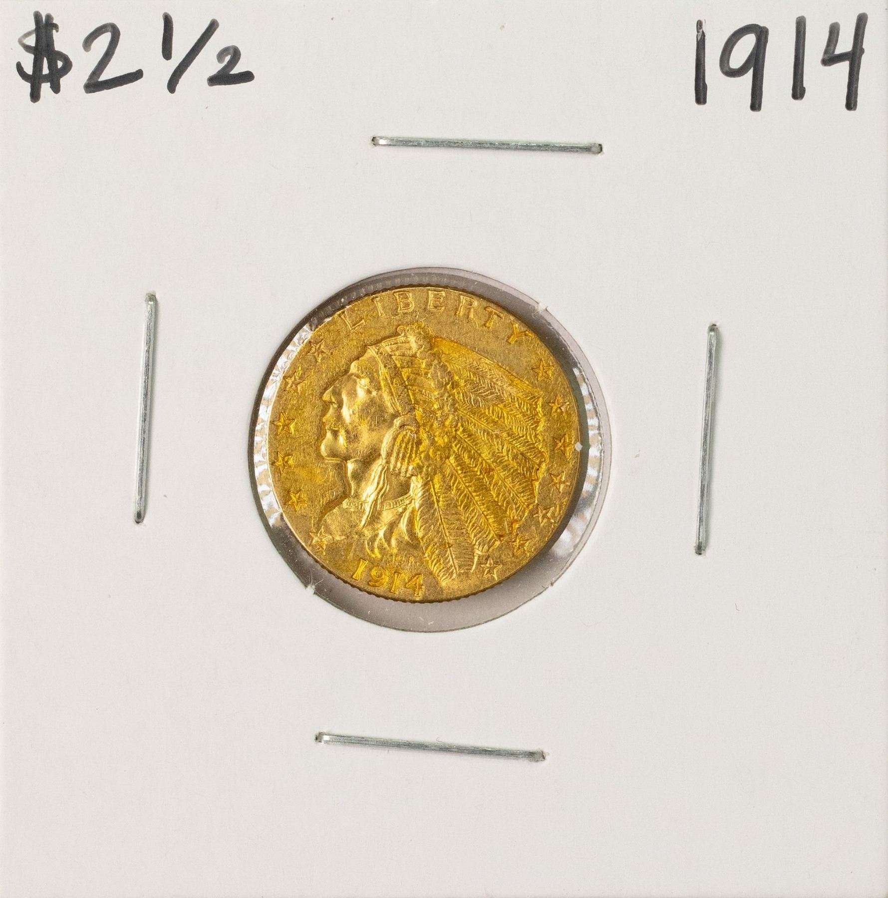One 1914 $2 1/2 Indian Head Quarter Eagle Gold Coin.