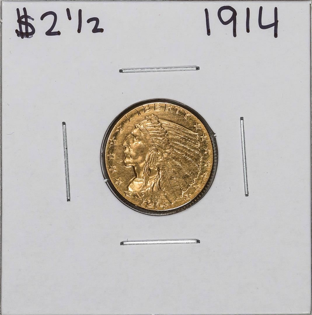 One 1914 $2 1/2 Indian Head Quarter Eagle Gold Coin, please note there is some damage to the coin as shown in the pictures.