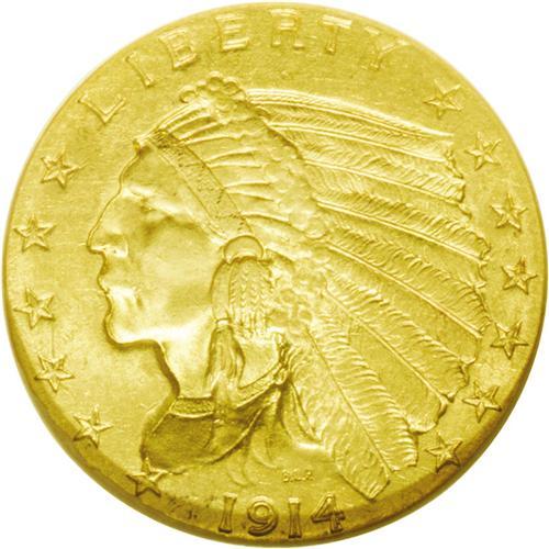 <B>1914<$2 1/2> MS63 NGC.</B></I> A Select specimen of the second scarcest Indian quarter eagle, next to the 1911-D in popularity and desirability. This example displays an average strike, with soft orange-gold luster that covers the lightly abraded surfaces.