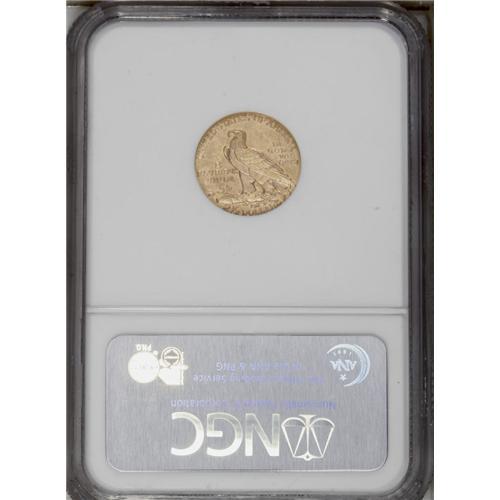 <B>1914 $2 1/2 MS62 NGC.</B></I> A hint of lavender is noted in the recesses of this yellow-orange piece. Boldly impressed and satiny with light abrasions on the Indian's face.<BR><BR><b>Shipping:</b> Coin/Currency (<a target="_blank" href="http://www.heritageauctions.com/common/shipping.php">view shipping information</a>)