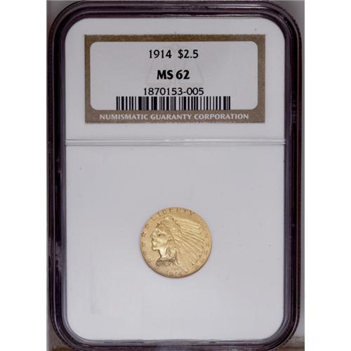 1914 $2 1/2 MS62 NGC. A lovely example of this scarce,