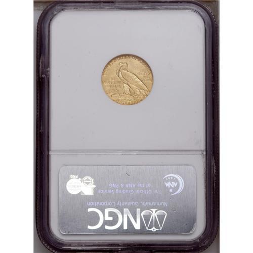 <B>1914 $2 1/2 MS62 NGC.</B></I> A lovely example of this scarce, low-mintage issue. The production for this date totaled 240,000 coins, the second lowest mintage behind the key-date 1911-D quarter eagle. This example has sharp design details and satiny yellow-gold luster. The surfaces are typical for the grade, with quite a number of abrasions and faint hairlines.