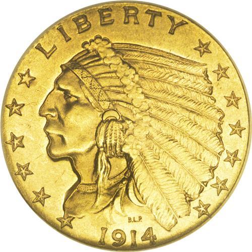 <B>1914 $2 1/2 MS63 NGC.</B></I> Dusky peach toning embraces this shimmering and nicely struck better date quarter eagle. The left borders display a couple of wispy marks, but these have no impact on the eye appeal. The premium for the scarce 1914 rises with each higher grade, due to strong date and mintmark demand for the series.<BR><BR><b>Shipping:</b> Coin/Currency (<a target="_blank" href="http://www.heritageauctions.com/common/shipping.php">view shipping information</a>)