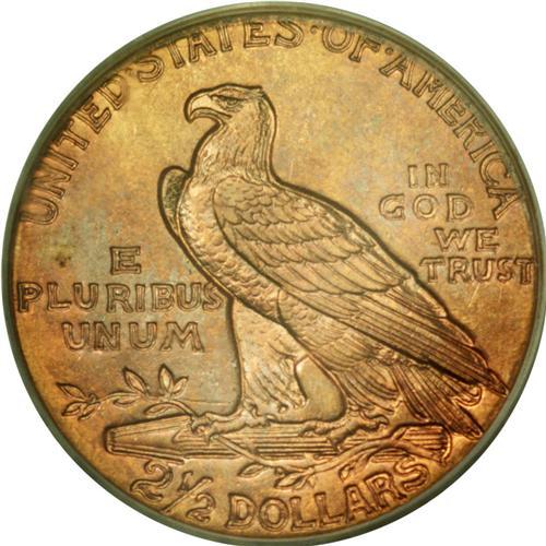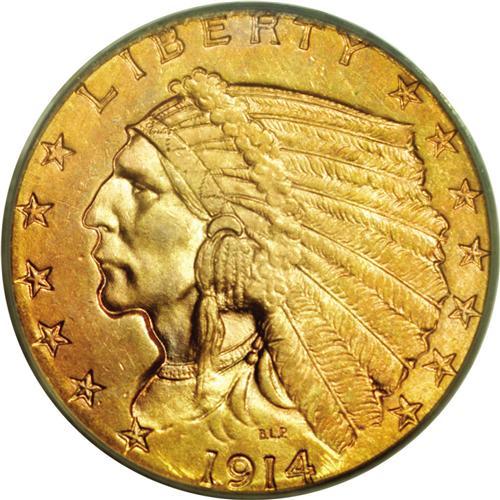 <B>1914 $2 1/2 MS63 PCGS.</B></I> The surfaces are deep amber-orange at the periphery, while rose-gold, pink, and lavender converge in the centers. The strike is solid, and the minor abrasions that define the grade are well-distributed and inoffensive. While the low mintage of 240,000 pieces is a contributing factor to this issue's scarcity today, more important is the war in Europe, which snarled international banking systems and kept many quarter eagles within the United States for circulation or melting.<BR><BR><b>Shipping:</b> Coins & Currency (<a target="_blank" href="http://www.heritageauctions.com/common/shipping.php">view shipping information</a>)