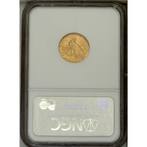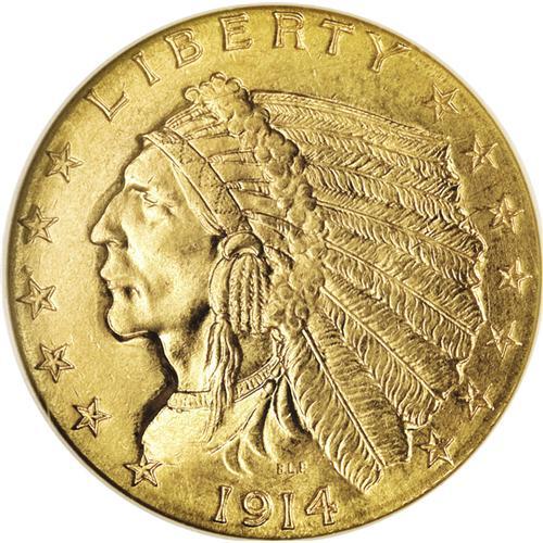 <B>1914 $2 1/2 MS64 NGC.</B></I> The low mintage 1914 is usually among the final issues to be added to a collection of Indian quarter eagles. Many numismatists begin this collection, since in Mint State, it is the most collectible pre-1933 gold series. This satiny and unblemished near-Gem has rich honey toning. The strike is above average, although the occasional minor detail within the headdress is blended, as made.<BR><BR><b>Shipping:</b> Coin/Currency (<a target="_blank" href="http://www.heritageauctions.com/common/shipping.php">view shipping information</a>)