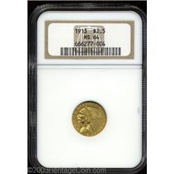 <TABLE cellSpacing=0 cellPadding=0 width="100%" bgColor=#000000 border=0><TBODY><TR><TD width="100%"><TABLE cellSpacing=1 cellPadding=3 width="100%" border=0><TBODY><TR><TD width="100%" bgColor=#79735c><FONT face=arial color=#ffffff size=3><B>Description</B> </FONT></TD></TR><TR><TD width="100%" bgColor=#ffffff><FONT face=arial size=2><B>1914 $2 1/2 MS64 NGC.</B></I> Satiny overall with minimal contact marks for the conservative grade. </FONT></TD></TR></TBODY></TABLE></TD></TR></TBODY></TABLE><BR><A name=PricesRealized></A><TABLE cellSpacing=0 cellPadding=0 width="100%" bgColor=#000000 border=0><TBODY><TR><TD width="100%"><TABLE cellSpacing=1 cellPadding=3 width="100%" border=0><TBODY><TR><TD width="100%" bgColor=#79735c><A name=PR><FONT face=arial color=#ffffff size=3><B>Previous Prices from Heritage Auctions</B> </FONT></A></TD></TR><TR><TD bgColor=#f6f6ed><TABLE cellSpacing=0 cellPadding=0 width="100%" border=1><TBODY><TR><TD align=middle width="33%"><B>Date</B></TD><TD align=middle width="33%"><B>Service</B></TD><TD align=middle width="33%"><B>Price</B></TD></TR><TR bgColor=whitesmoke><TD width="33%"><B>08/05/2001</B></TD><TD width="33%">NGC</TD><TD width="33%">$373.75</TD></TR><TR bgColor=whitesmoke><TD width="33%"><B>04/24/2001</B></TD><TD width="33%">NGC</TD><TD width="33%">$460.00</TD></TR><TR bgColor=whitesmoke><TD width="33%"><B>09/26/2000</B></TD><TD width="33%">NGC</TD><TD width="33%">$370.00</TD></TR><TR bgColor=whitesmoke><TD width="33%"><B>09/05/2000</B></TD><TD width="33%">NGC</TD><TD width="33%">$380.00</TD></TR><TR bgColor=whitesmoke><TD width="33%"><B>07/25/2000</B></TD><TD width="33%">NGC</TD><TD width="33%">$400.00</TD></TR><TR bgColor=whitesmoke><TD width="33%"><B>03/12/1993</B></TD><TD width="33%">NGC</TD><TD width="33%">$412.50</TD></TR><TR bgColor=whitesmoke><TD width="33%"><B>11/07/2000</B></TD><TD width="33%">NGC</TD><TD width="33%">$310.00</TD></TR><TR bgColor=whitesmoke><TD width="33%"><B>01/09/1999</B></TD><TD width="33%">NGC</TD><TD width="33%">$412.50</TD></TR><TR bgColor=whitesmoke><TD width="33%"><B>02/08/2000</B></TD><TD width="33%">NGC</TD><TD width="33%">$380.00</TD></TR><TR bgColor=whitesmoke><TD width="33%"><B>01/05/1994</B></TD><TD width="33%">NGC</TD><TD width="33%">$577.50</TD></TR><TR bgColor=whitesmoke><TD width="33%"><B>03/22/1997</B></TD><TD width="33%">PCGS</TD><TD width="33%">$575.00</TD></TR><TR bgColor=whitesmoke><TD width="33%"><B>06/02/1995</B></TD><TD width="33%">PCGS</TD><TD width="33%">$385.00</TD></TR><TR bgColor=whitesmoke><TD width="33%"><B>05/13/2003</B></TD><TD width="33%">NGC</TD><TD width="33%">$460.00</TD></TR><TR bgColor=whitesmoke><TD width="33%"><B>03/03/2003</B></TD><TD width="33%">NGC</TD><TD width="33%">$414.00</TD></TR><TR bgColor=whitesmoke><TD width="33%"><B>08/12/2003</B></TD><TD width="33%">NGC</TD><TD width="33%">$471.50</TD></TR><TR bgColor=whitesmoke><TD width="33%"><B>03/18/2003</B></TD><TD width="33%">NGC</TD><TD width="33%">$529.00</TD></TR><TR bgColor=whitesmoke><TD width="33%"><B>10/22/2002</B></TD><TD width="33%">NGC</TD><TD width="33%">$368.00</TD></TR><TR bgColor=whitesmoke><TD width="33%"><B>07/02/2002</B></TD><TD width="33%">NGC</TD><TD width="33%">$368.00</TD></TR><TR bgColor=whitesmoke><TD width="33%"><B>06/18/2002</B></TD><TD width="33%">NGC</TD><TD width="33%">$368.00</TD></TR><TR bgColor=whitesmoke><TD width="33%"><B>06/11/2002</B></TD><TD width="33%">NGC</TD><TD width="33%">$402.50</TD></TR><TR bgColor=whitesmoke><TD width="33%"><B>05/28/2002</B></TD><TD width="33%">NGC</TD><TD width="33%">$368.00</TD></TR><TR bgColor=whitesmoke><TD width="33%"><B>05/14/2002</B></TD><TD width="33%">NGC</TD><TD width="33%">$437.00</TD></TR><TR bgColor=whitesmoke><TD width="33%"><B>04/28/2002</B></TD><TD width="33%">NGC</TD><TD width="33%">$310.50</TD></TR><TR bgColor=whitesmoke><TD width="33%"><B>02/05/2002</B></TD><TD width="33%">NGC</TD><TD width="33%">$414.00</TD></TR><TR bgColor=whitesmoke><TD width="33%"><B>11/25/2002</B></TD><TD width="33%">ANACS</TD><TD width="33%">$807.30</TD></TR><TR bgColor=whitesmoke><TD width="33%"><B>05/05/2003</B></TD><TD width="33%">NGC</TD><TD width="33%">$517.50</TD></TR><TR bgColor=whitesmoke><TD width="33%"><B>06/17/2003</B></TD><TD width="33%">NGC</TD><TD width="33%">$437.00</TD></TR></TBODY></TABLE></TD></TR><TR><TD bgColor=#ffffff><FONT face=arial size=1 ?>PLEASE NOTE: All prices realized reflect the final hammer price PLUS the buyer's premium in auctions that charge a buyer's premium. Each item has a notation at the top of the listing indicating whether that lot included a buyer's premium. Example: A item that sells with a final hammer price of $100 and a 20% buyer's premium will display with a price realized of $120. All information listed is intended to be as accurate as possible, but errors are possible. Please use this guide carefully and inform us of any inaccuracies. </FONT></TD></TR></TBODY></TABLE></TD></TR></TBODY></TABLE><BR><TABLE cellSpacing=0 cellPadding=0 width="100%" bgColor=#000000 border=0><TBODY><TR><TD width="100%"><TABLE cellSpacing=1 cellPadding=3 width="100%" border=0><TBODY><TR><TD width="100%" bgColor=#79735c colSpan=6><FONT face=arial color=#ffffff size=3><B>Price Guide*</B> </FONT></TD></TR><TR bgColor=#f6f6ed><TD align=middle><B>Grade</B> </TD><TD align=middle><B>Coin World<BR>(Trends)</B> </TD><TD align=middle><B>Numismedia<BR>Retail</B> </TD><TD align=middle><B>Numismedia<BR>Wholesale</B> </TD><TD align=middle><B>Coin<BR>Universe</B> </TD><TD align=middle><B>Heritage<BR>Value Index</B> </TD></TR><TR bgColor=#ffffff><TD align=middle>60</TD><TD align=right>$500.00</TD><TD align=right>$350.00</TD><TD align=right>$292.00</TD><TD align=right>$425.00</TD><TD align=right>$313.38</TD></TR><TR style="FONT-WEIGHT: bold" bgColor=#cccfdd><TD align=middle>61</TD><TD align=right>---</TD><TD align=right>$600.00</TD><TD align=right>$480.00</TD><TD align=right>$505.00</TD><TD align=right>$664.63</TD></TR><TR bgColor=#ffffff><TD align=middle>62</TD><TD align=righ