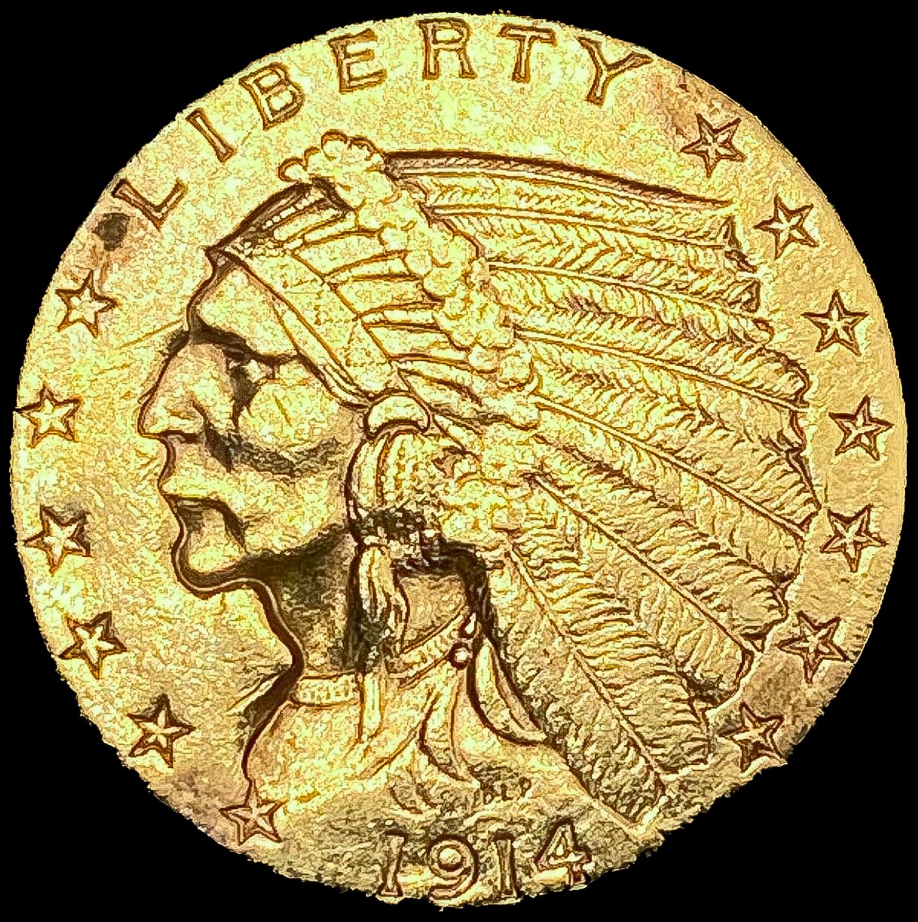 1914 $2.50 Gold Quarter Eagle CLOSELY UNCIRCULATED