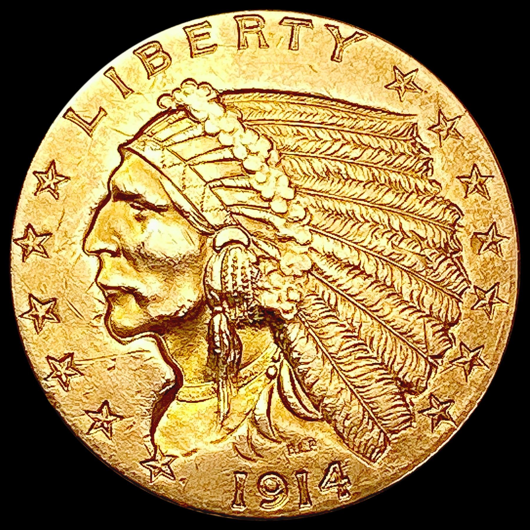 1914 $2.50 Gold Quarter Eagle CLOSELY UNCIRCULATED