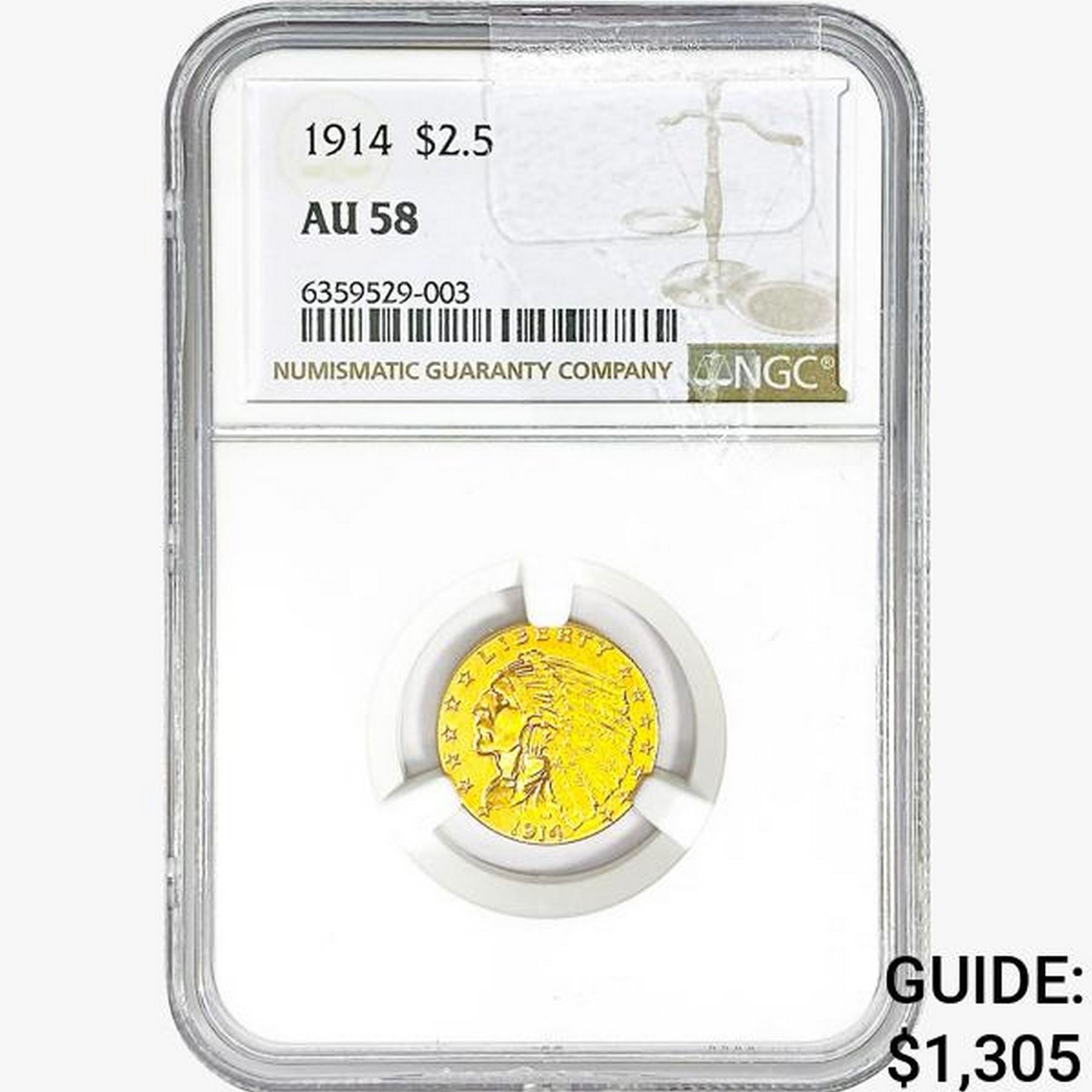 1914 $2.50 Gold Quarter Eagle NGC AU58