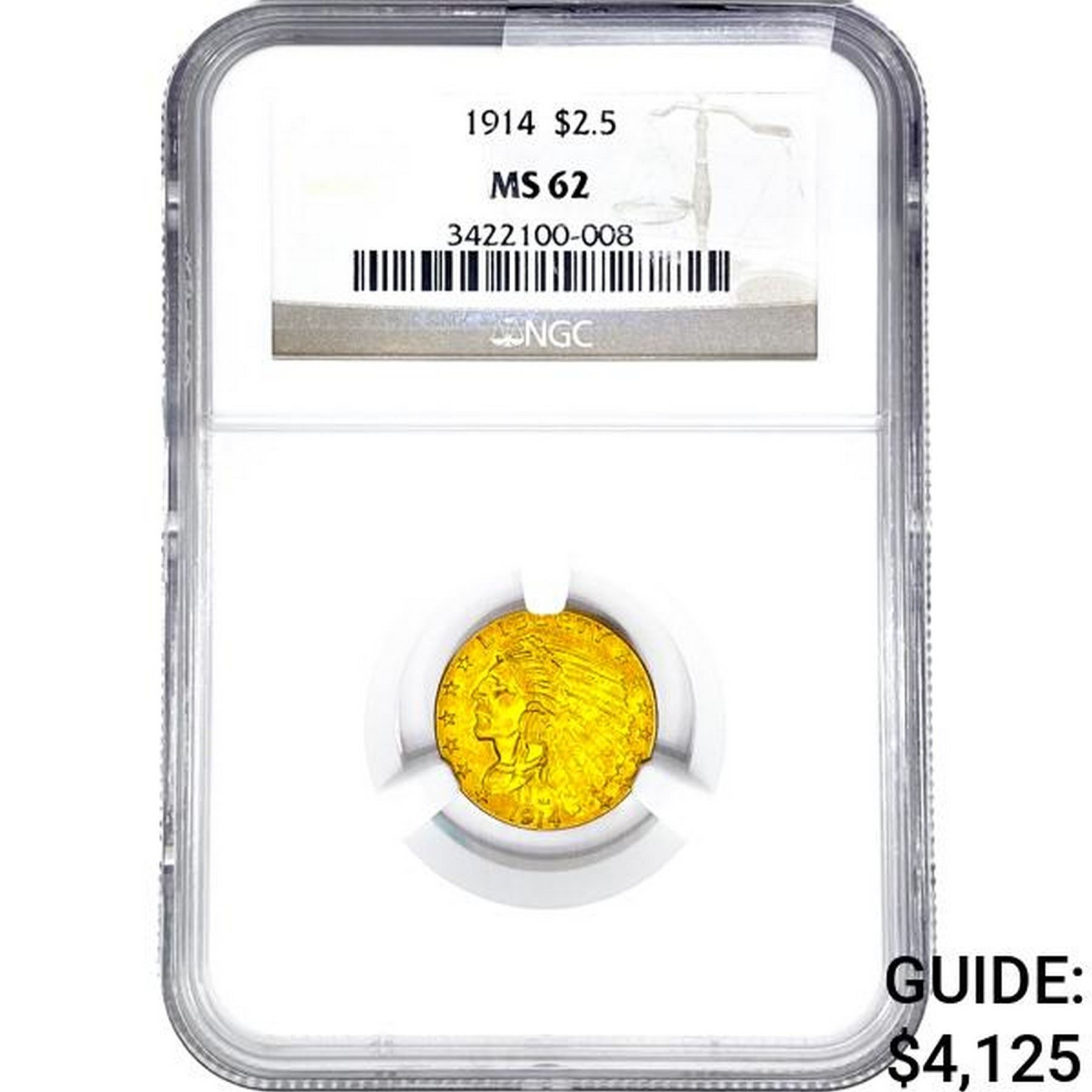 1914 $2.50 Gold Quarter Eagle NGC MS62