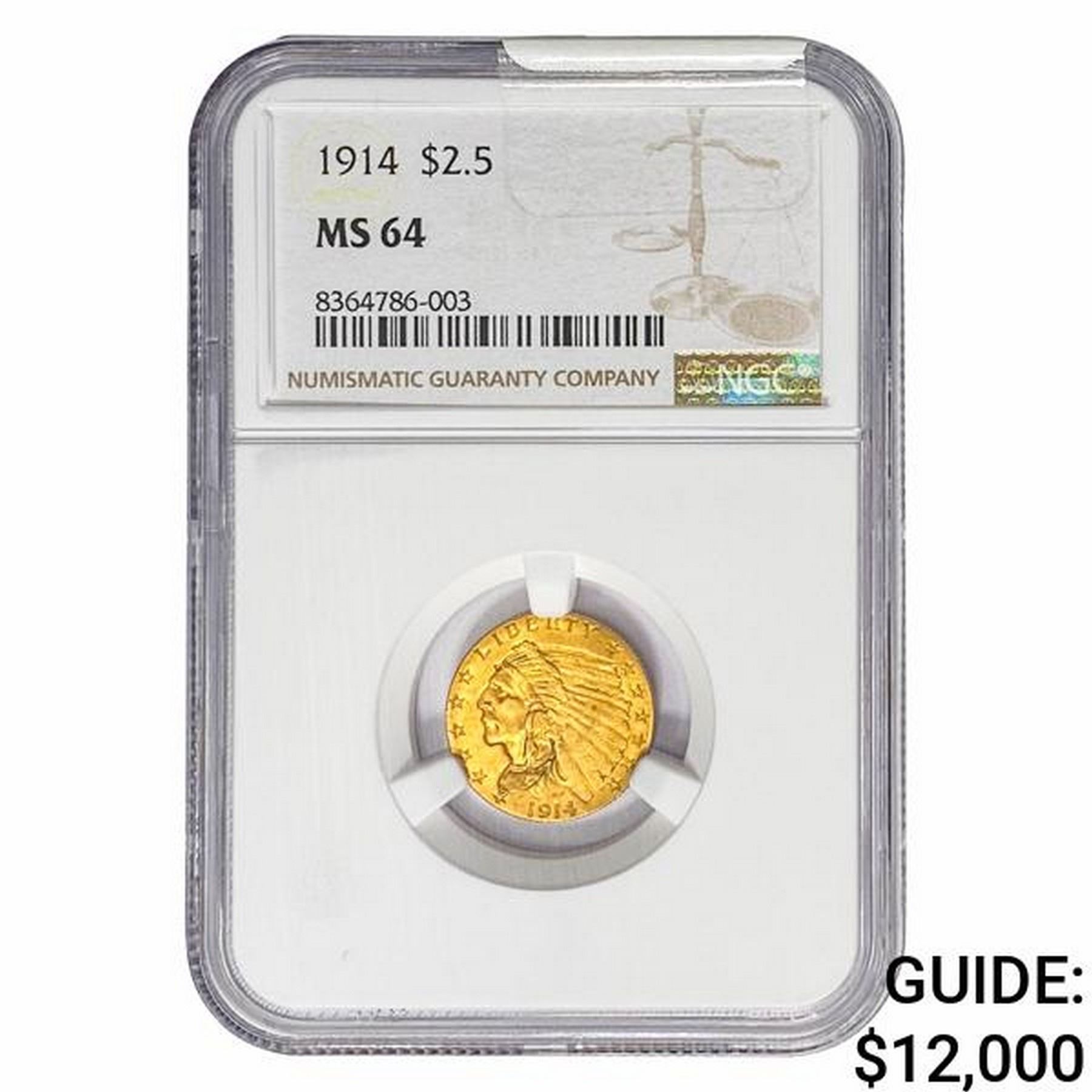 1914 $2.50 Gold Quarter Eagle NGC MS64