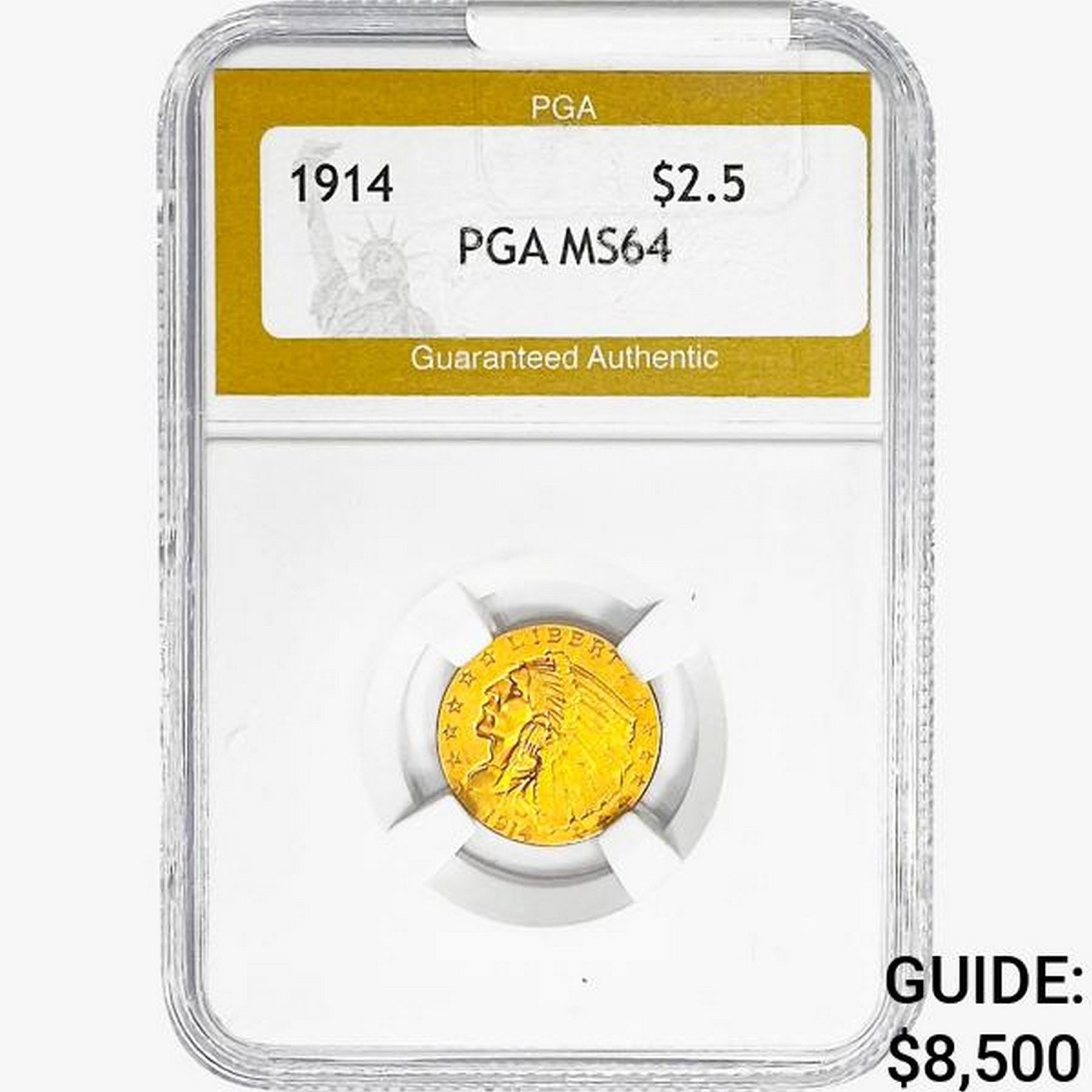 1914 $2.50 Gold Quarter Eagle PGA MS64