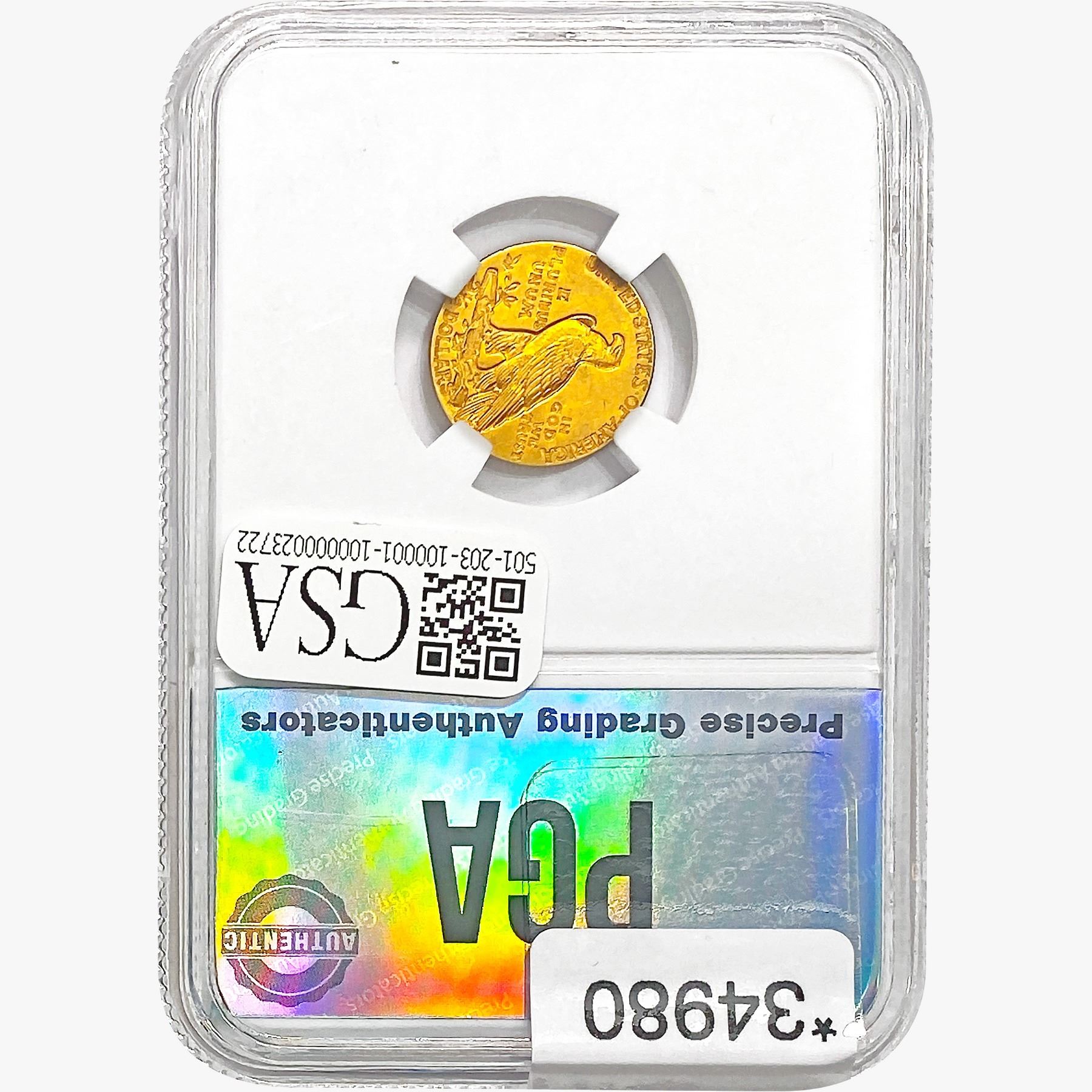 COINS AND CURRENCY LISTED IN GSA’S CATALOG AS GRADED AND ENCAPSULATED BY PCGS, NGC, ANACS, ICG, PCGS CURRENCY, PMG, PCGS BANKNOTE GRADING, CMC OR ANY OTHER THIRD-PARTY GRADING SERVICE ARE LIKEWISE SOLD “AS-IS” EXCEPT AS EXPRESSLY SET FORTH HEREIN. ALL THIRD-PARTY GRADING SERVICE GUARANTEES, INCLUDING AUTHENTICITY, ARE THE SOLE RESPONSIBILITY OF THE THIRD-PARTY GRADING SERVICE AND NOT WARRANTIES OR GUARANTEES OF GSA. BIDDERS SHOULD CONTACT THESE THIRD-PARTY GRADING SERVICES DIRECTLY WITH RESPECT TO ANY CLAIMS OR QUESTIONS THEY MAY HAVE CONCERNING THEIR GUARANTEES AND WARRANTIES. BIDDERS ACKNOWLEDGE AND AGREE THAT AUCTIONEER IS NOT BOUND BY OR LIABLE FOR ANY OPINION OR CERTIFICATION BY ANY THIRD-PARTY GRADING SERVICE. REMOVAL OF A PRODUCT FROM ITS PROTECTIVE CASING OR HOLDER OR ALTERATION OF ANY COIN HOLDER WAIVES ALL RIGHTS CONCERNING THE PRODUCT CONTAINED THEREIN.