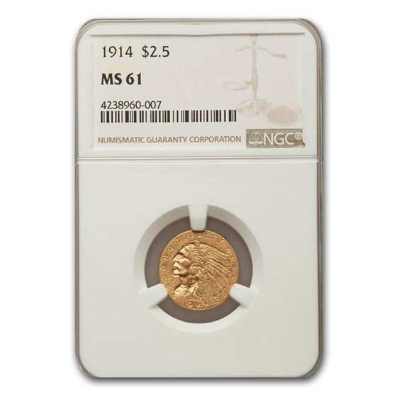One piece 1914 $2.50 Indian Gold Quarter Eagle MS-61 NGC
