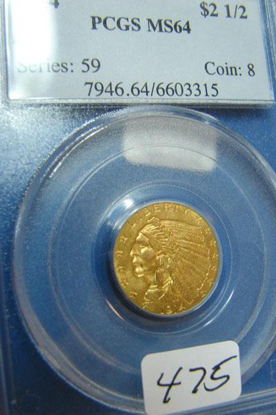 1914 $2.50 Indian Head Gold Coin PCGS MS64
