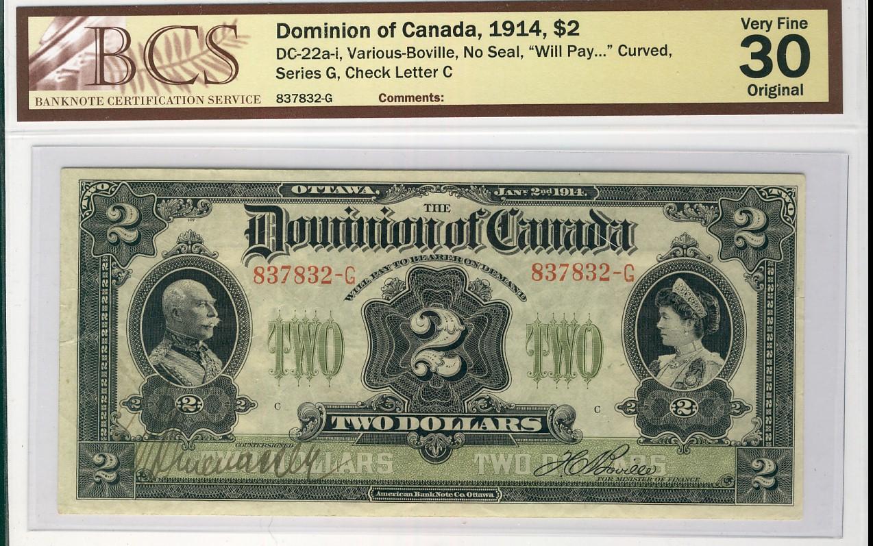 1914 $2 DC-22a-I #837832-G BCS VF30.
