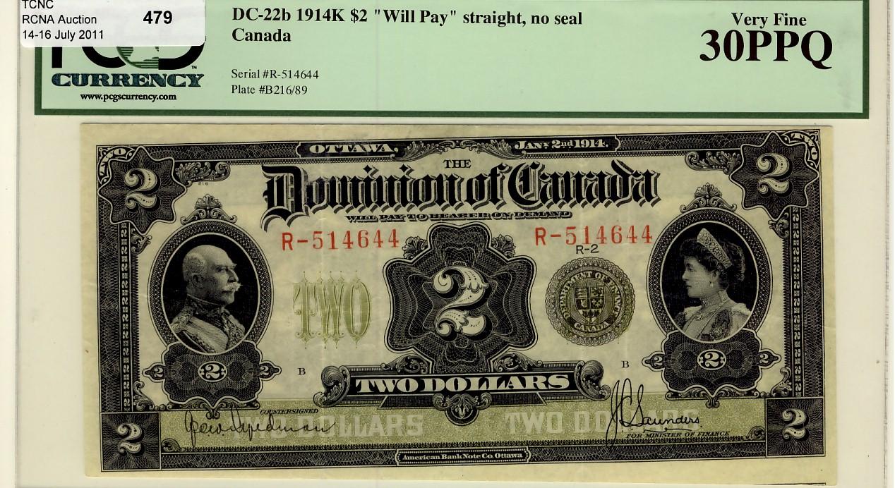 9. The cataloguer has taken every reasonable measure to ensure that all of the lots in this sale are as described and genuine. All raw coins and banknotes have been graded by the cataloguer or the auction house which represent our best professional opinion. To grade coins and banknotes, we use Canadian grading standards, 31 years of experience and good conscience. Grading is a subjective description in the opinion of the cataloguer or the auction house. Among experts there are often differences of opinion on the grading and the eye appeal of a coin. The strike and the state of preservation are often debated. TCNC acts as an agent between consignors and buyers. TCNC does not guarantee that any coin or banknote catalogued will meet the standards, or the grade, of any third party grading companies. No warranty, whether impressed or implied.