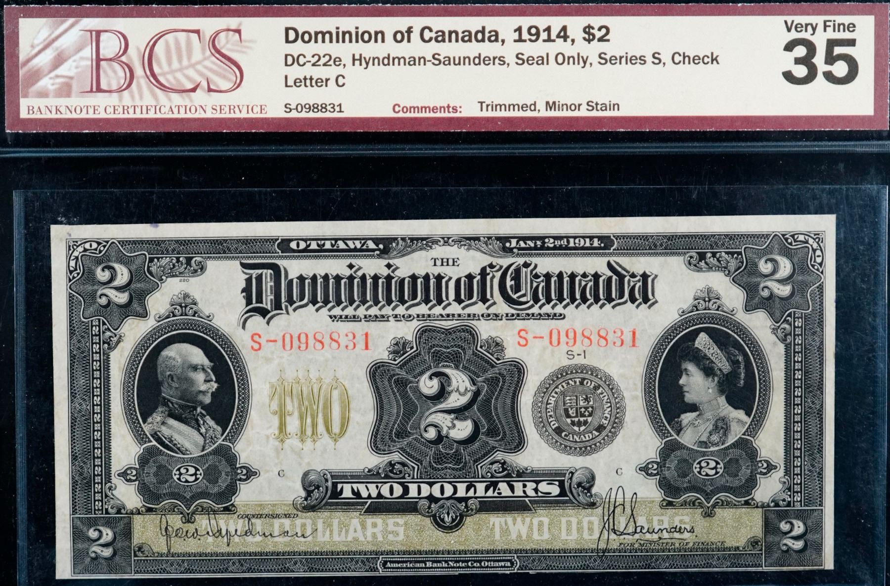 The cataloguer has taken every reasonable measure to ensure that all of the lots in this sale are as described and genuine. All raw coins and banknotes have been graded by the cataloger or the auction house which represent our best professional opinion. To grade coins and banknotes, we use Canadian grading standards, 42 years of experience and good conscience. However, grading is a subjective description in the opinion of the cataloger or the auction house. Among experts there are often differences of opinion on the grading and the eye appeal of a coin. The strike and the state of preservation are often debated. The Canadian Numismatic Company acts as an agent between consignors and buyers. The Canadian Numismatic Company does not guarantee that any coin or banknote cataloged will meet the standards, or the grade, of any third party grading companies. No warranty, whether impressed or implied. Items are as is, no warranty given. We cannot accept responsibility and waive all liability resulting in financial losses, and or incidentals accruing from the sale of any items, nor can we guarantee that items graded by third party services will grade the same if submitted to a different grading service or re-submitted to the same company. Statements by The Canadian Numismatic Company regarding the condition, the eye appeal, the strike and the population of items are for guidance only. All lots offered are sold "AS IS". Title to all lots remains with the auction house until paid for in full by the purchaser. But they are held at the risk of the purchaser once the time of the sale.