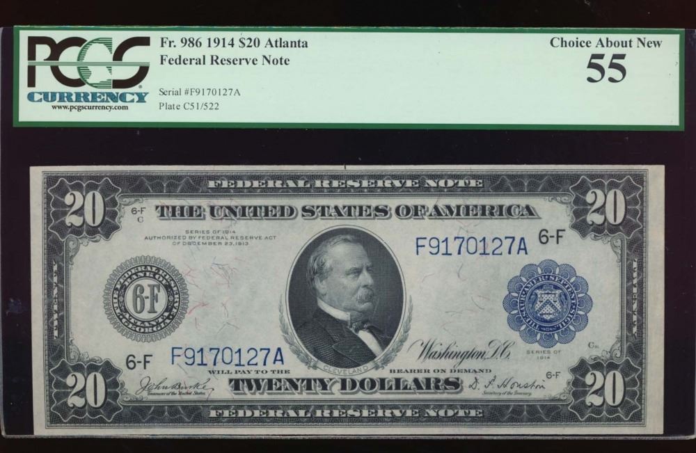 One 1914 $20 Atlanta Federal Reserve Note PCGS 55.