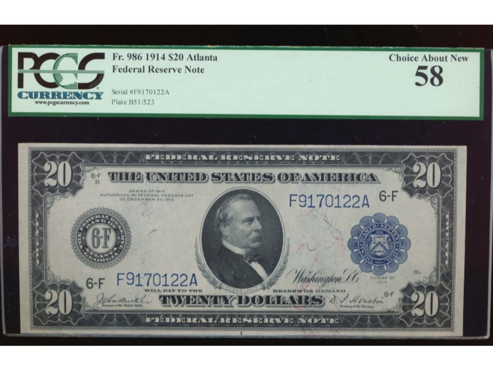 One 1914 $20 Atlanta Federal Reserve Note PCGS 58.
