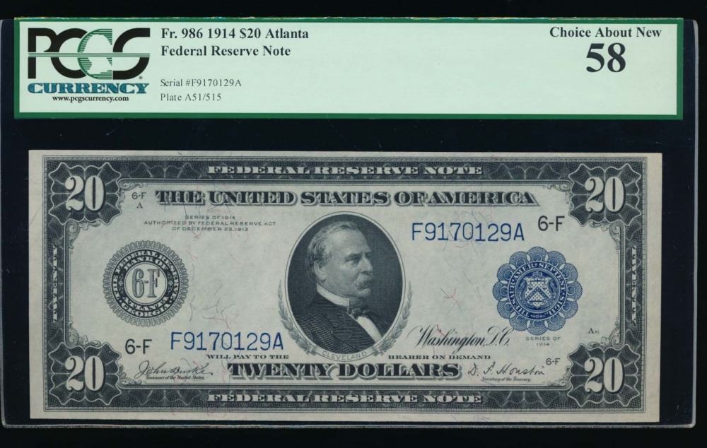 One 1914 $20 Atlanta Federal Reserve Note PCGS 58.